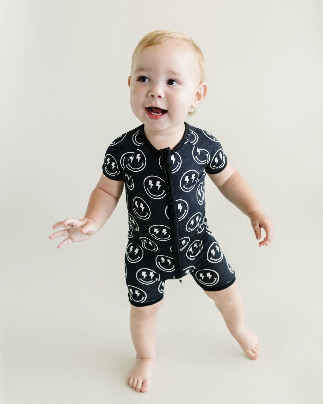 Baby Bamboo Shorty Romper | Electric Smiley