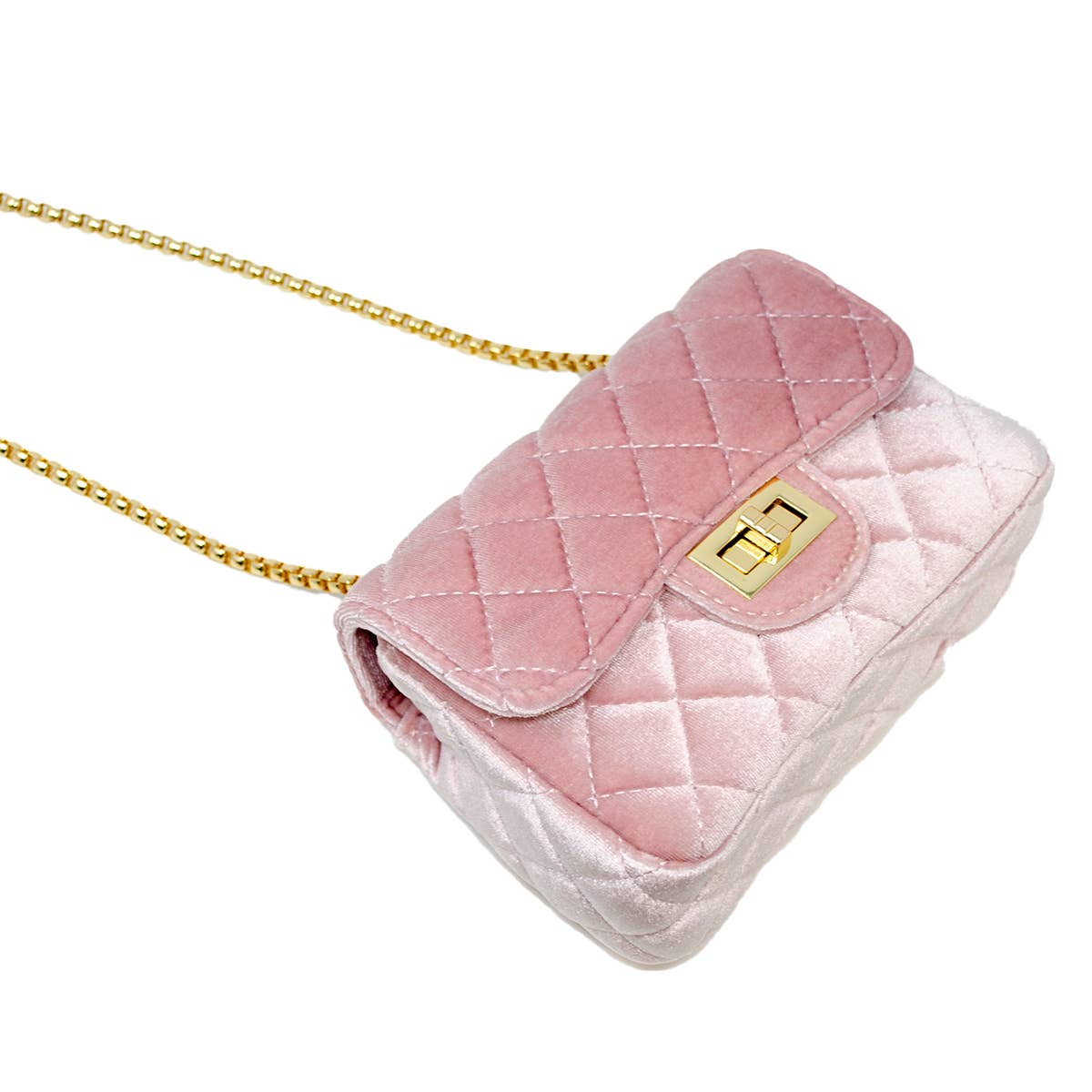 The large classic suede bag is a large version of our classic tweed bags. Great size for tweens or kids who love a larger size bags. The chain is designed to be worn either crossbody or shoulder.